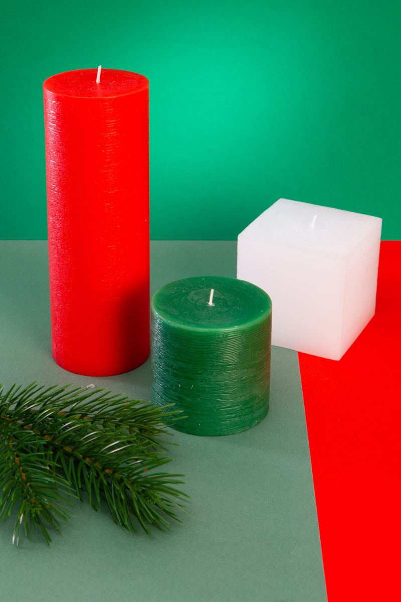 В набор входит  свечи 3 шт, красный цилиндр 1 шт, размер 6,6*19 см; белый куб 1 шт, размер  7,5*7,5 и темный зеленый цилиндр 1 шт, размер 7,3*10 см. Свечи- конструктор для интерьера  ТМ Crystal Style - это яркие и необычные цвета и формы, которые выделят и украсят ваше пространство. Подойдут для любого интерьера и оформления. Их можно сочетать между собой и использовать в разных помещениях, например, в салоне красоты, при оформлении свадебных интерьеров, фотозон или дней рождений. Такой набор станет не банальным и интересным подарком для девушки, подруги, друга, коллеги по работе . Свечи изготовлены из парафина и красителей европейского качества. Свечи без отдушек. Фитиль из натуральной хлопковой нити. Высокое качество парафина: обеспечивает длительное горение и ровное пламя, не создавая дыма или неприятного запаха. Этот набор чудесно дополнят конусные свечи из нашей коллекции "Роман с нежностью" и "Морозный день"